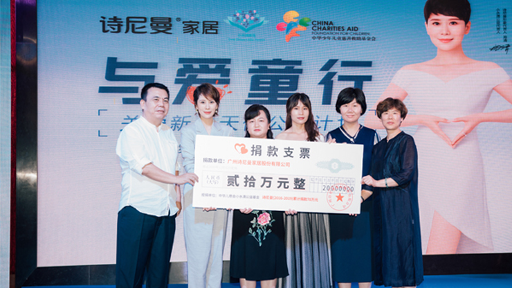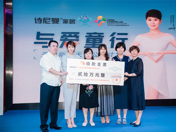 詩尼曼積極履行社會責任,為社會持續(xù)創(chuàng)造價值。2012年積極響應國內(nèi)影響深遠的“用愛照亮明天”光頭行動, 2013年鼎力支持“陽光天使、點燃夢想”讀書站建設,2015年首創(chuàng)關(guān)愛4類家庭健康居家活動日, 2016年持續(xù)對“小水滴新生”進行公益資助,2018年與中華兒慈會發(fā)起“與愛童行”關(guān)愛新生天使公益計劃, 并將“詩尼曼全國旗艦店工藝角”規(guī)劃落地,持續(xù)為小水滴公益進行資金和物資資助。近十年來,詩尼曼一直 關(guān)注并助力兒童治療、文化教育等慈善公益。